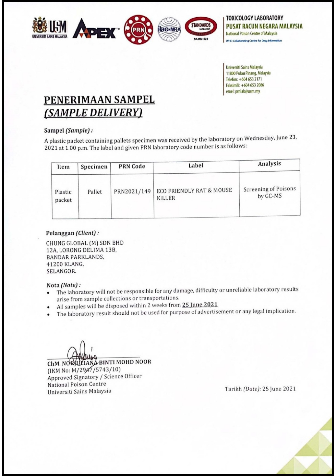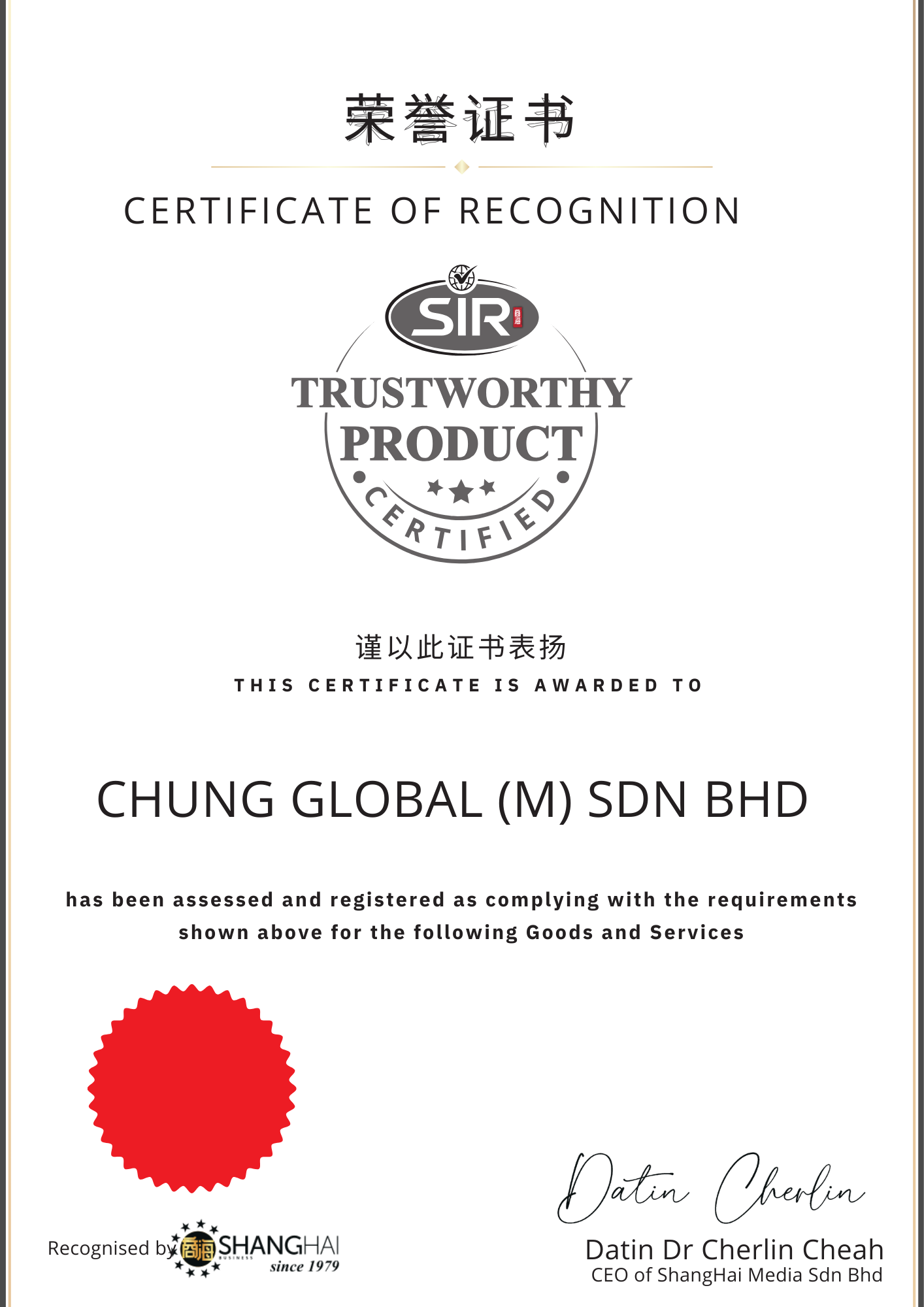 At Chung Global, we are committed to delivering pest repellent solutions of the highest quality. Our dedication to excellence is reinforced by a range of certifications and quality assurance measures that guarantee the effectiveness and safety of our products.